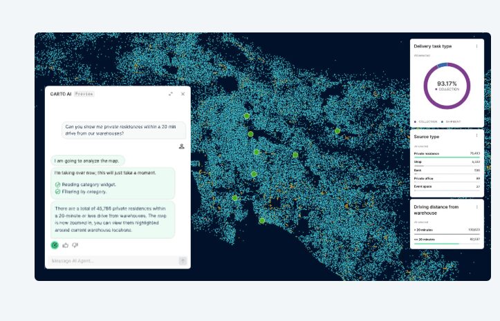 CARTO is the leading cloud-native spatial analytics platform that unlocks powerful location intelligence directly in your data warehouse. From interactive mapping and advanced spatial analysis to drag-and-drop workflows and accelerated app development, CARTO delivers limitless scale without complex ETLs. Access thousands of curated datasets, build custom geospatial applications, and transform location data into actionable insights that reveal not just where things happen, but why they happen there.